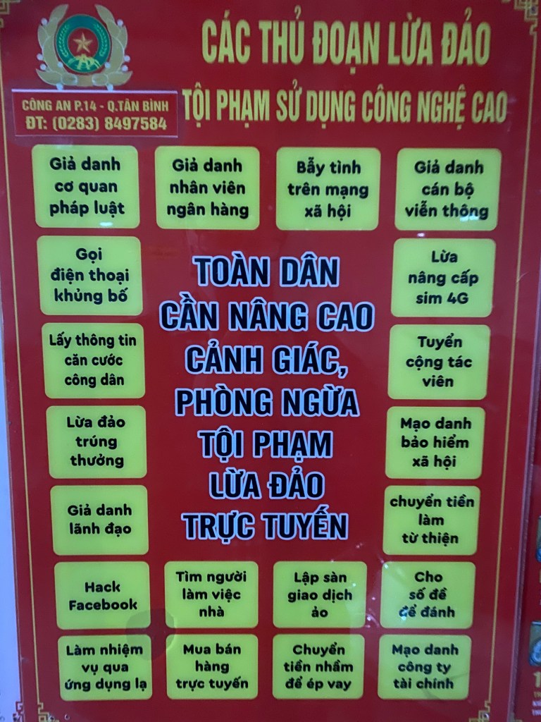 Here is a poster in Vietnam that every buildings have to place to warn citizen about online scammer. Scammers now are tech + government powered criminals, well funded and well-organized !